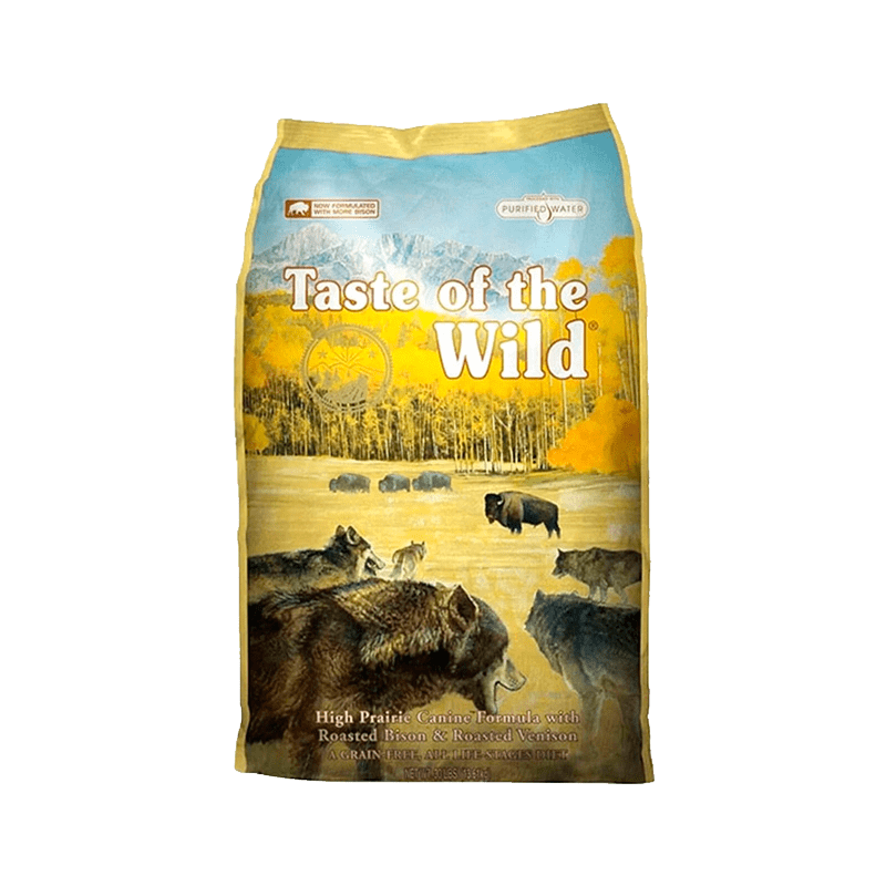 Taste of the Wild High Prairie Canine Recipe es un concentrado para perros adultos que aportará los niveles de energía y nutrientes necesarios para mantener sanos, activos y vitales a perros adultos. Su fórmula más natural, equilibrada y similar a que un perro adulto encontraría en la naturaleza está elaborada con carnes asadas de bisontes y venados criados en pasto, lo cual aportará un delicioso e irresistible sabor. Tiene un alto contenido de proteína que aportará altos niveles de energía y verduras, frutas y legumbres que aportarán antioxidantes de fuentes naturales, ideales para favorecer un sistema inmunológico fortalecido.